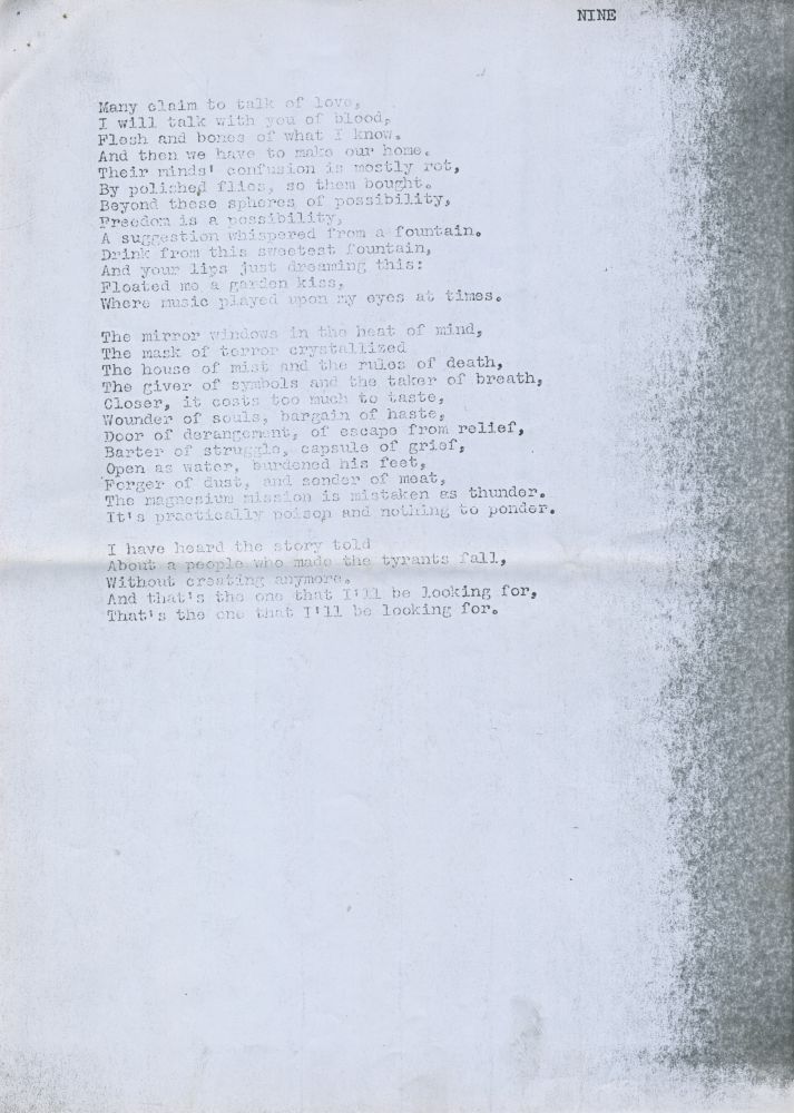 This strange item is a very poor quality 70s photocopy of a 13 page typing by Stephen Pickering. It is supposed to present the lyrics of six Dylan songs transcripted from a 1971 tape that, if it exists, has still not surfaced.