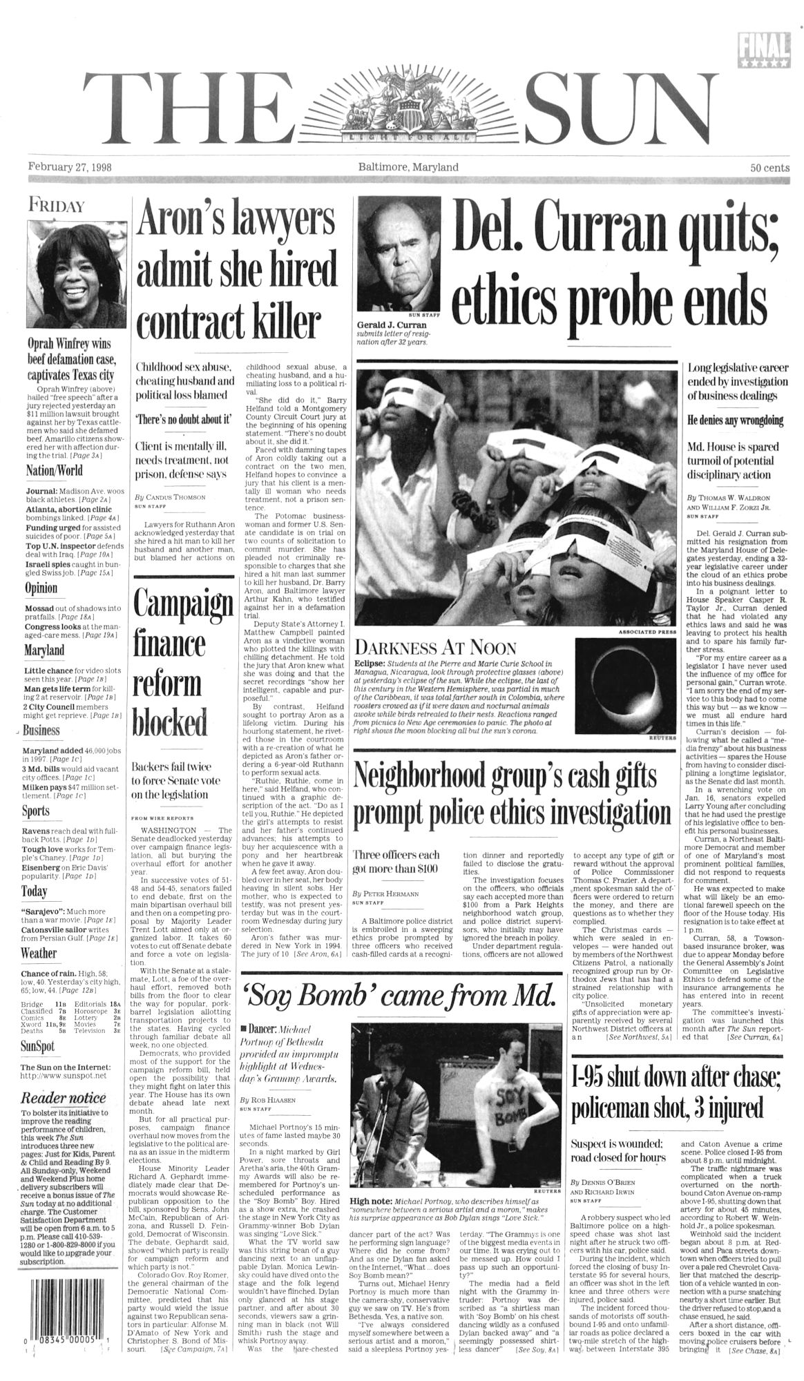 THE BALTIMORE SUN is the largest general-circulation daily newspaper based in Maryland and provides coverage of local and regional news, events, issues, people, and industries. It was founded on May 17, 1837, by printer/editor/publisher/owner Arunah Shepherdson Abell.