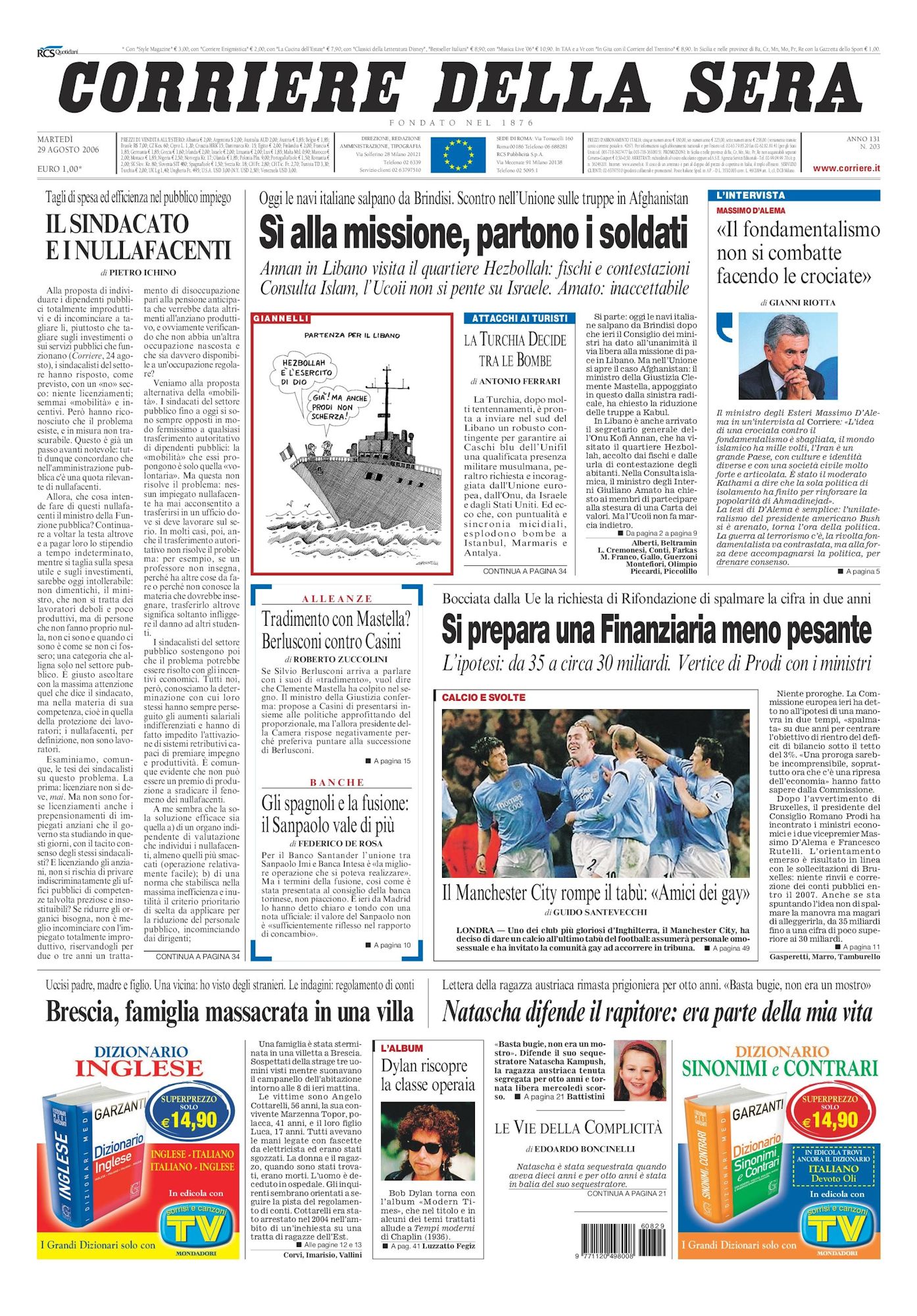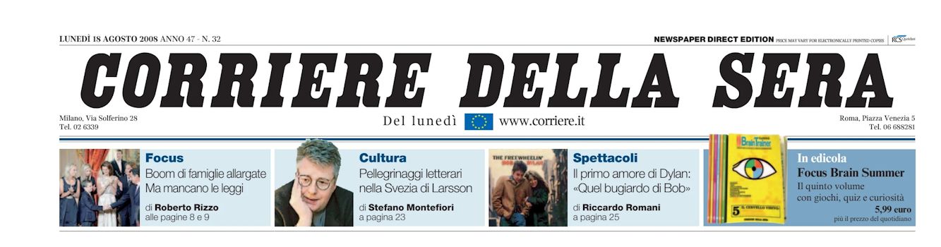 First published on 5 March 1876, CORRIERE DELLA SERA is one of Italy's oldest daily newspapers and is Italy's most read newspaper. Its masthead has remained unchanged since its first edition in 1876. It reached a circulation of over 1 million under editor and co-owner Luigi Albertini, between 1900 and 1925. He was a strong opponent of socialism, of clericalism, and of Prime Minister Giovanni Giolitti who was willing to compromise with those forces. Albertini's opposition to the Fascist regime forced the other co-owners to oust him in 1925.