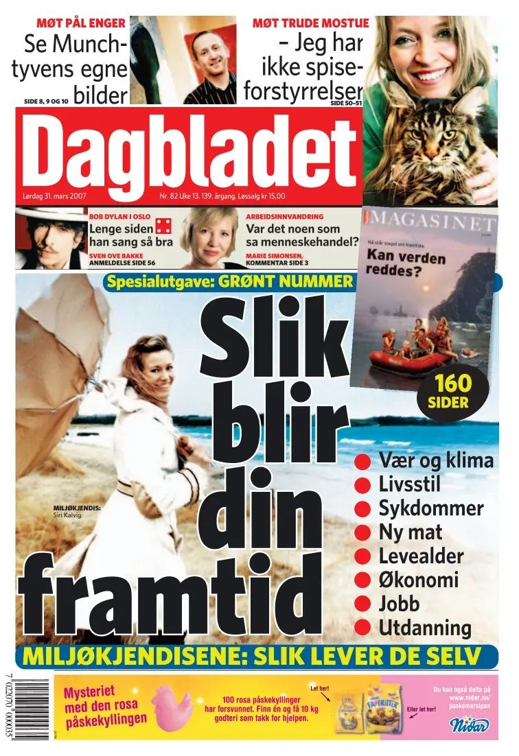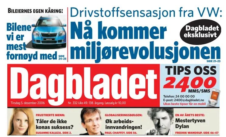 DAGBLADET (English: The Daily Magazine) is one of Norway's largest newspapers. It is published in the tabloid format. It has 1,400,000 daily readers on mobile, web and paper. DAGBLADET is considered the main liberal newspaper of Norway, with a generally liberal progressive editorial outlook, associated with Scandinavian cultural radicalism.