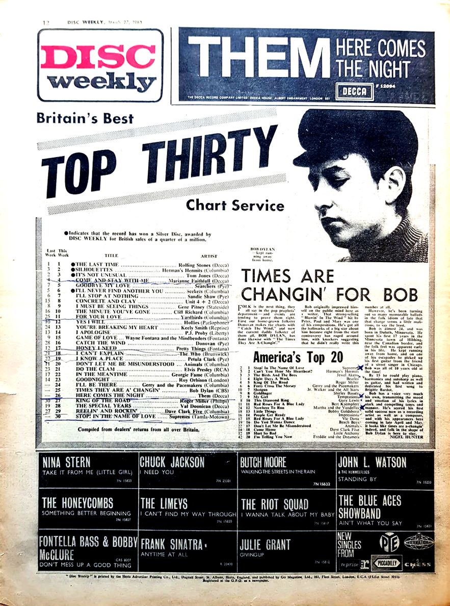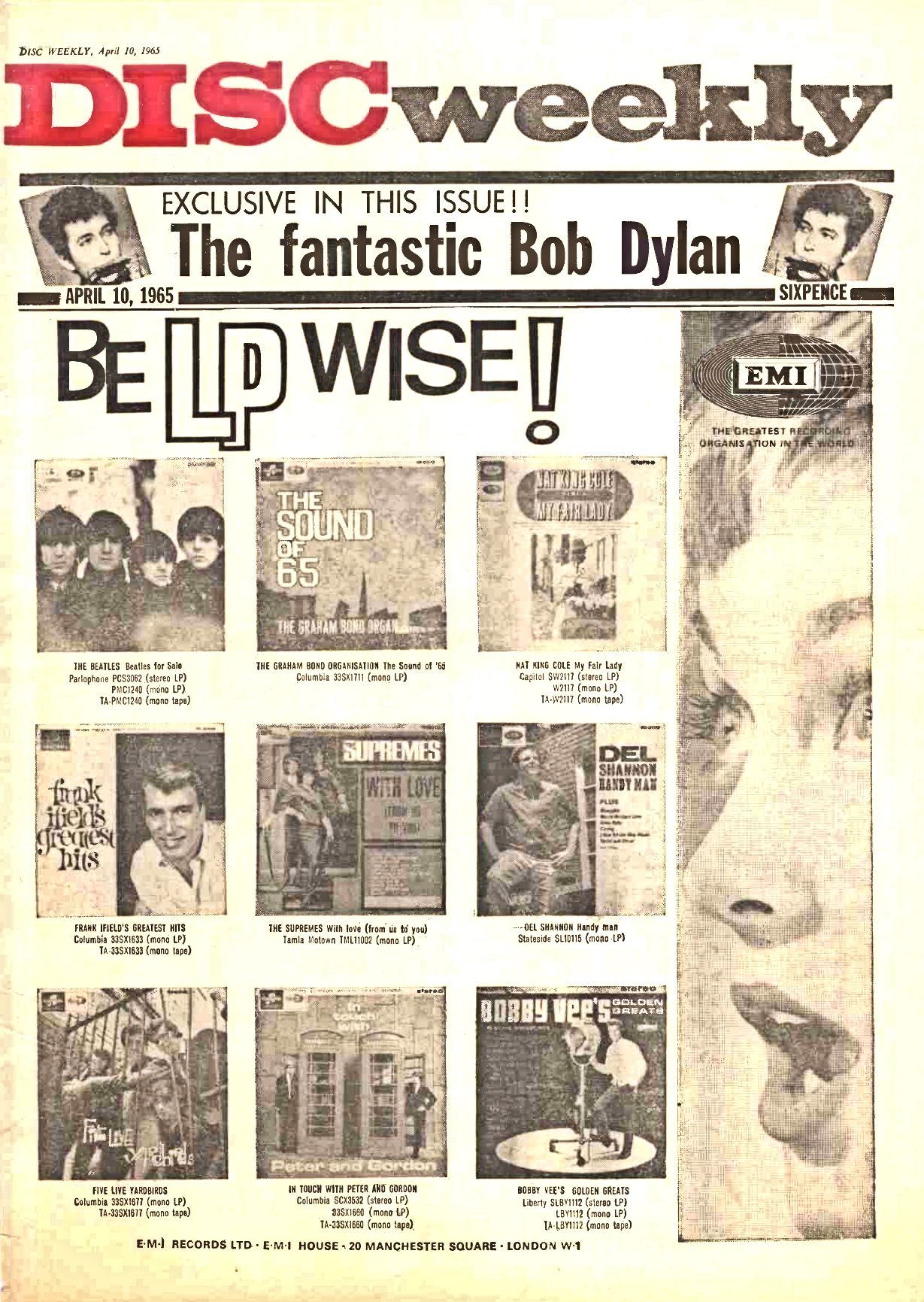 In 1966, it was incorporated with MUSIC ECHO magazine, which had itself previously taken over MERSEY BEAT. The new magazine was known as DISC AND MUSIC ECHO (with the name "DISC" shown more prominently on the masthead), from 23 April 1966.