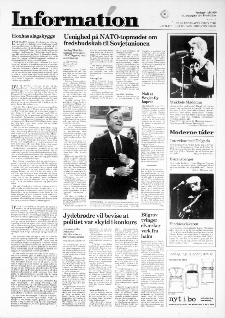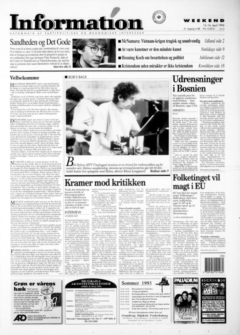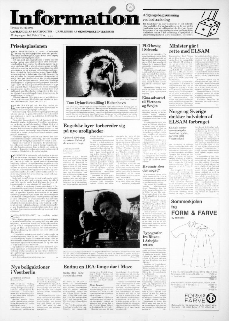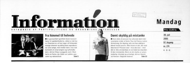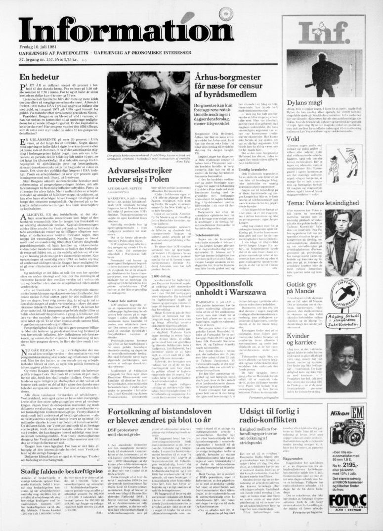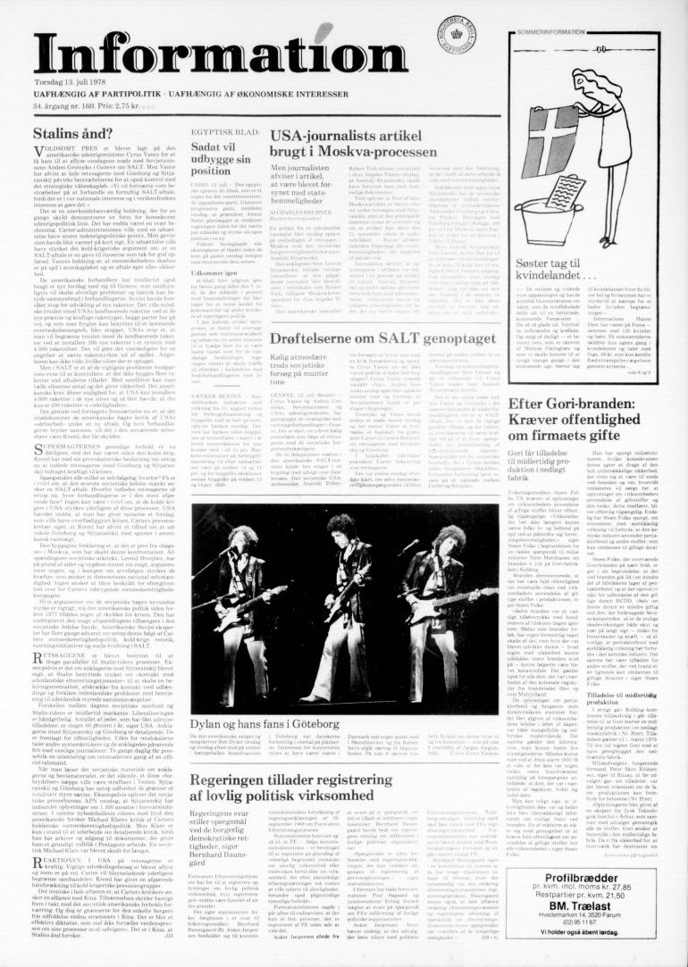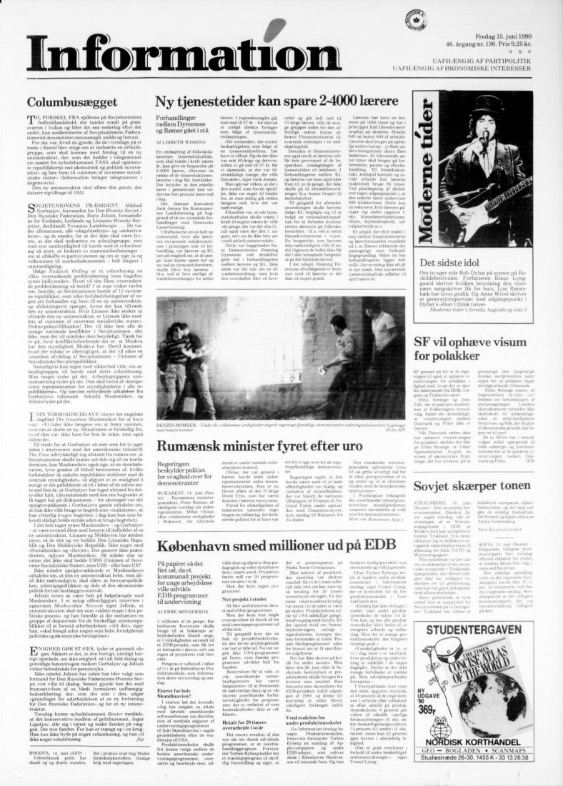 INFORMATION, full name: DAGBLADET INFORMATION, is a Danish newspaper published Monday through Saturday. It was established and published by the Danish resistance movement in 1943 during World War II. The newspaper, despite being politically independent, is regarded as left liberal, or left-wing, and is known for being equally critical in its point of view of all political organizations.