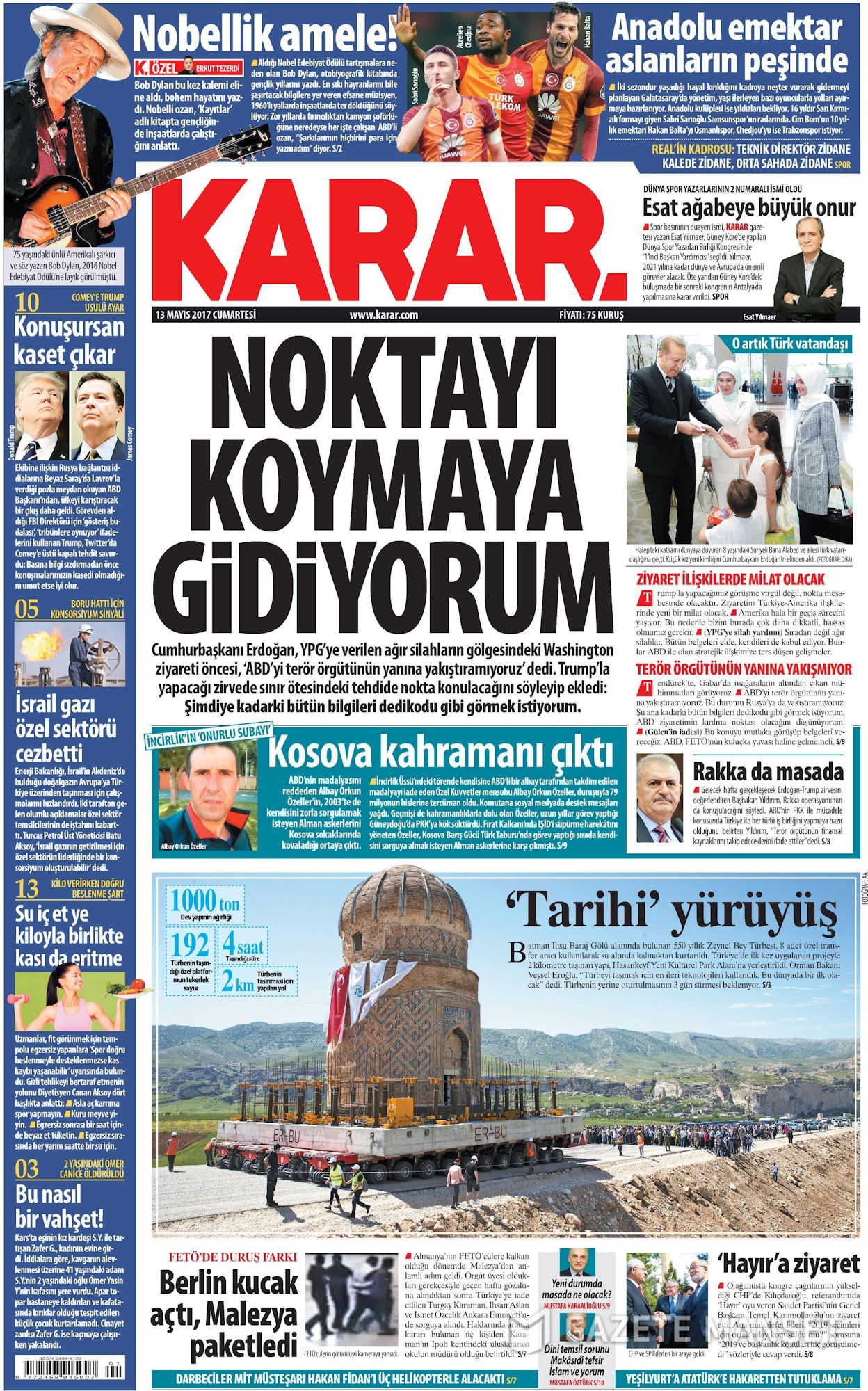 KARAR (in English "Decision") is a daily newspaper published in Turkey since 7 March 2016. Below: 13 May 2017. [1225] Thank you to Eric Galzi for this item.