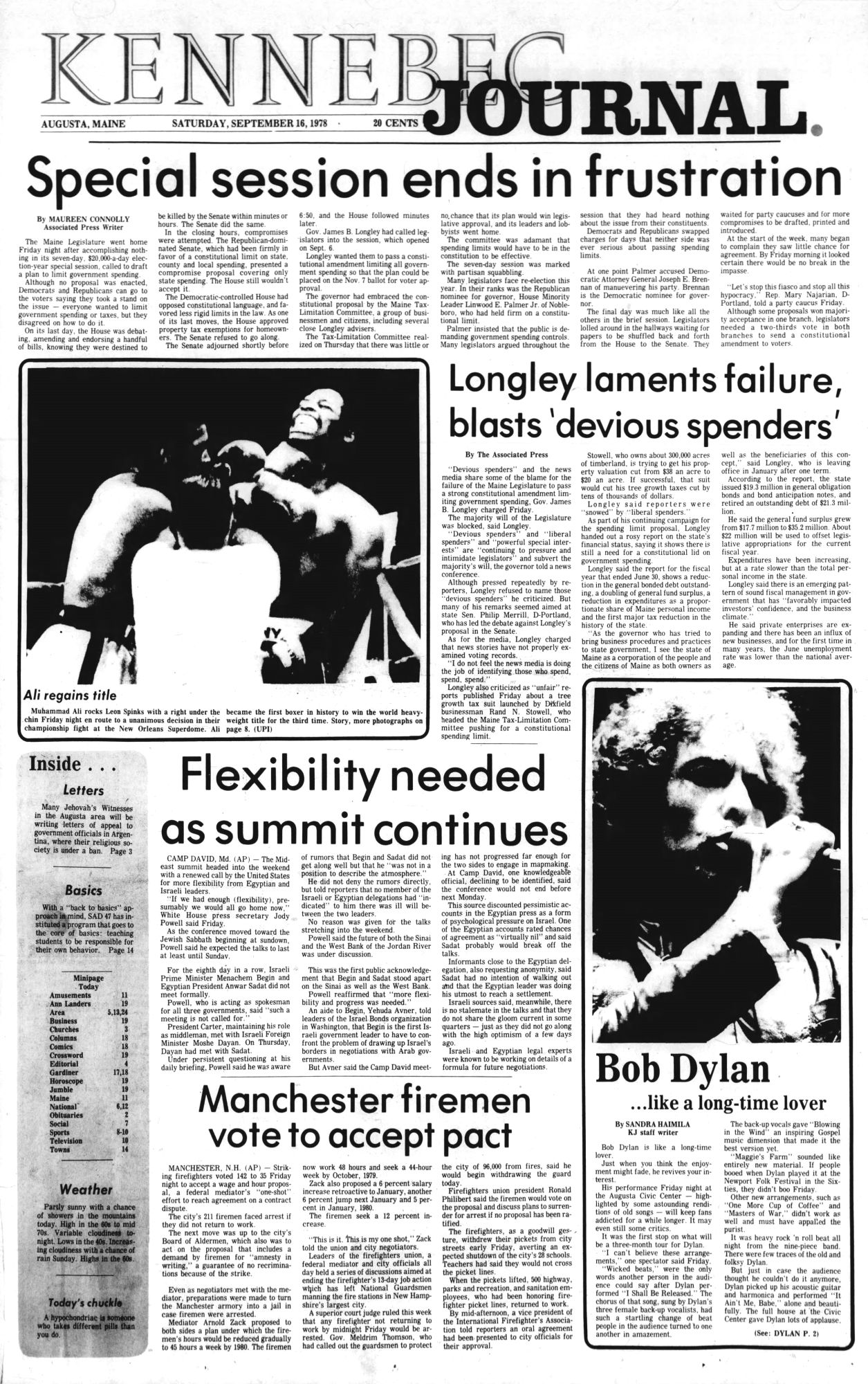 The KENNEBEC JOURNAL (KJ) is a six-day morning daily newspaper published in Augusta, Maine. It covers Augusta and the surrounding capital area, as well as southern Kennebec County.