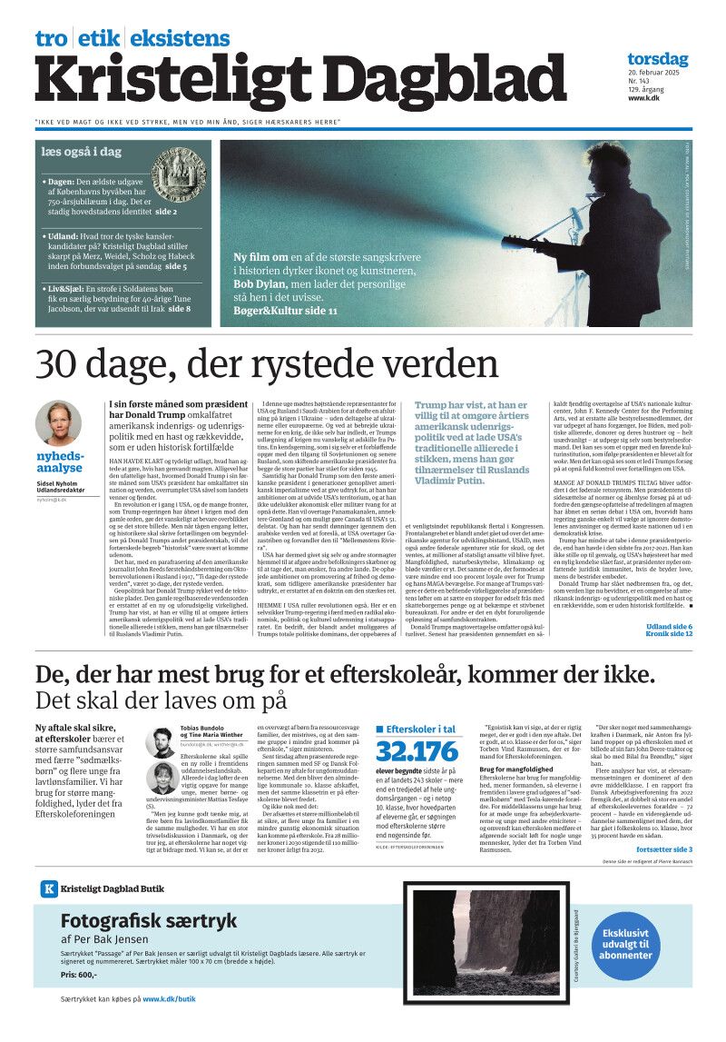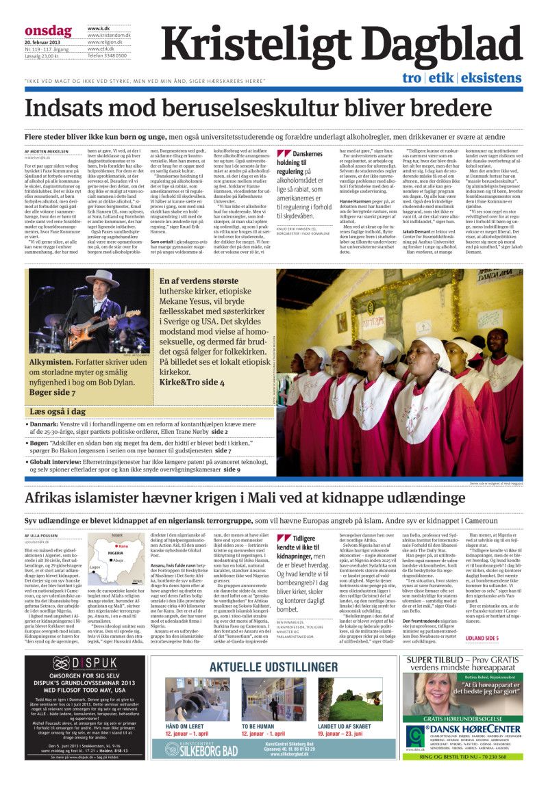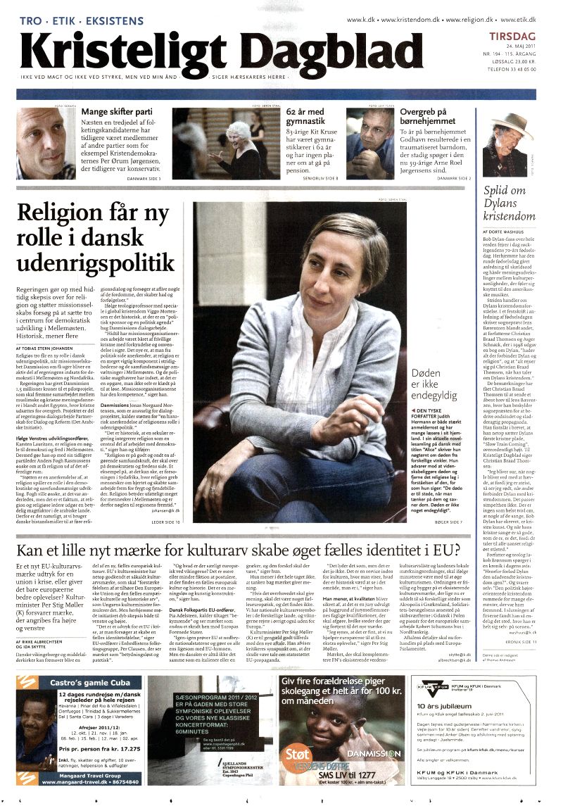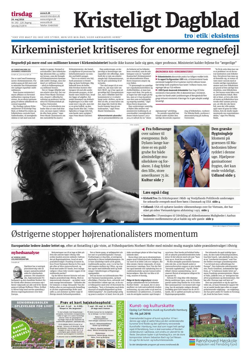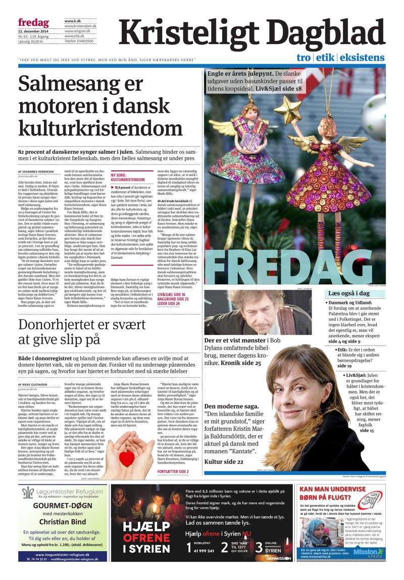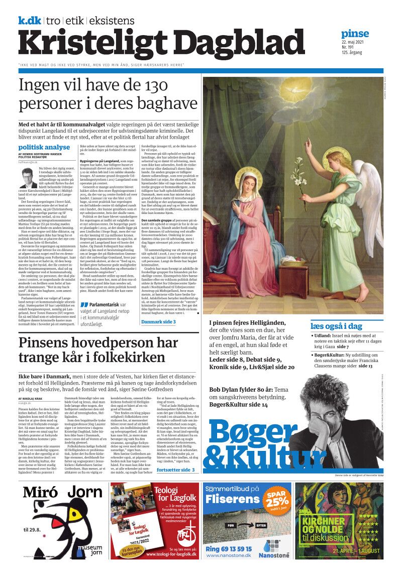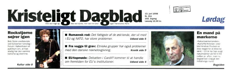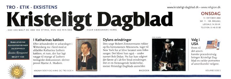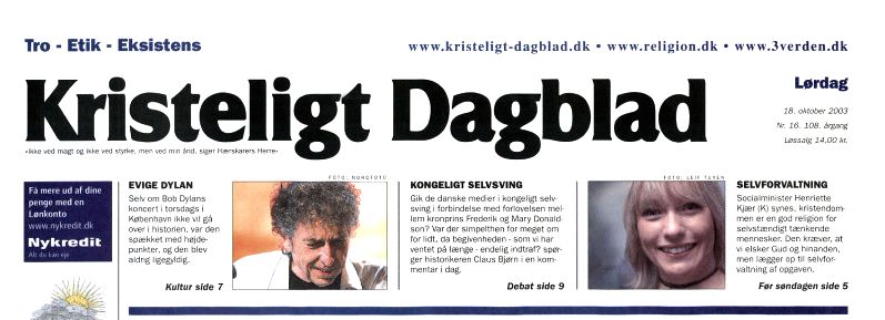 KRISTELIGT DAGBLAD is a Danish newspaper in Copenhagen. The paper was founded in 1896 and is still circulation in the 2000s. It was founded with a Christian orientation.