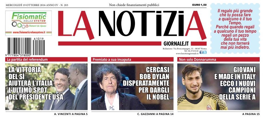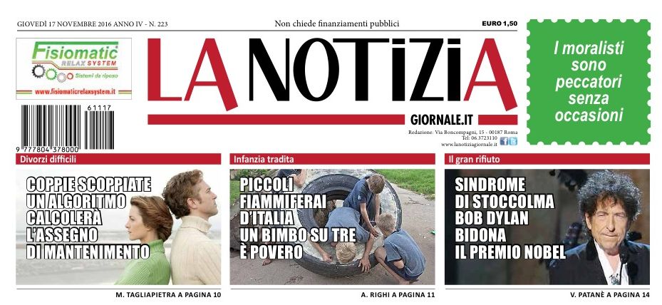 LA NOTIZIA ('The News') is an Italian newspaper which was started by Gaetano Pedullà, an Italian journalist and politician, and other journalists in 2013. The paper is headquartered in Rome.