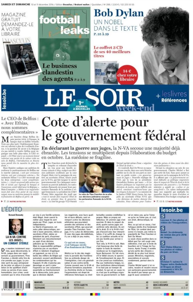 LE SOIR, ("The Evening") is a French-language Belgian daily newspaper. Founded in 1887 by Emile Rossel, it was intended as a politically-independent source of news. It is one of the most popular Francophone newspapers in Belgium, competing with LA LIBRE BELGIQUE, and since 2005 has appeared in Berliner format. It is owned by Rossel & Cie, which also owns several Belgian news outlets and the French paper LA VOIX DU NORD.