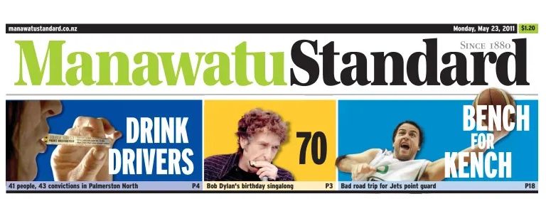 The MANAWATŪ STANDARD (formerly the EVENING STANDARD) is the daily paper for the Manawatū region based in Palmerston North.