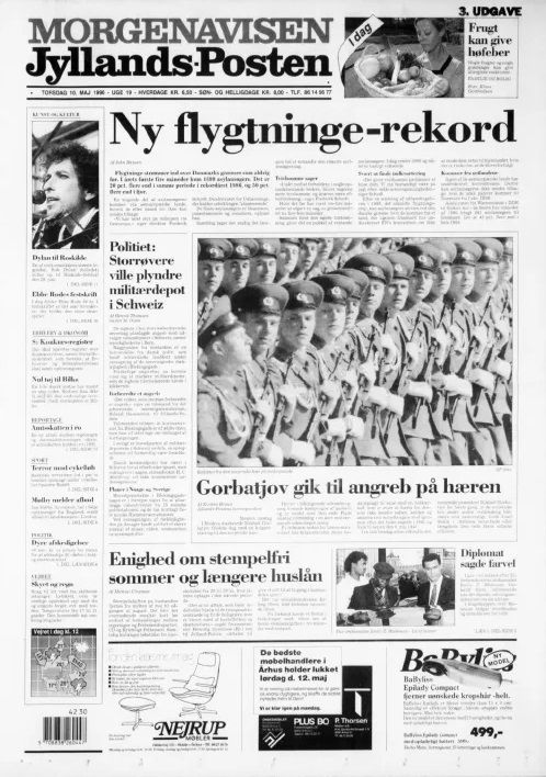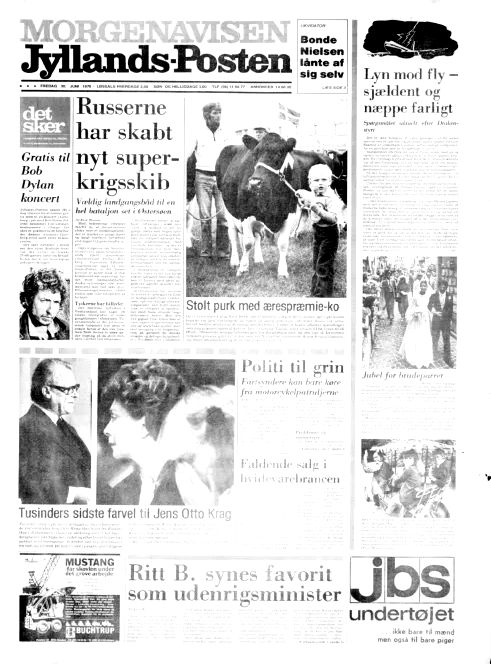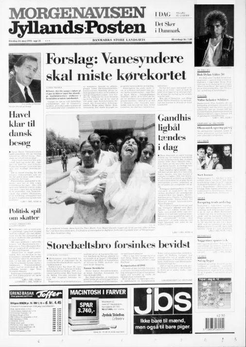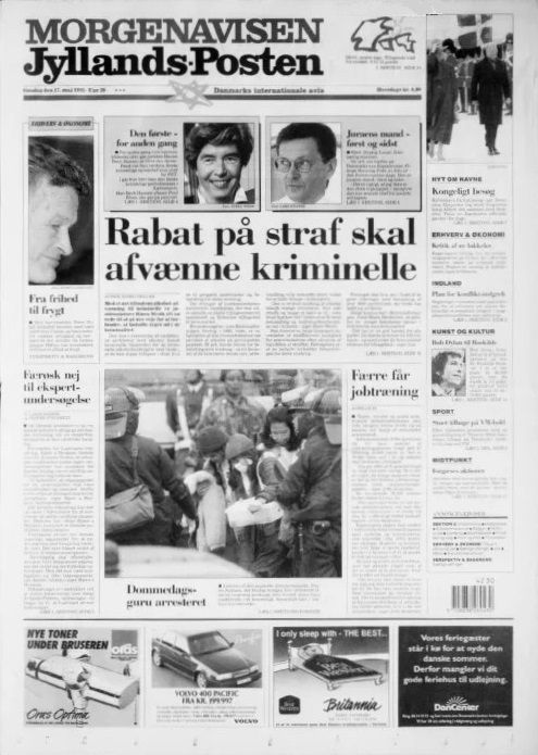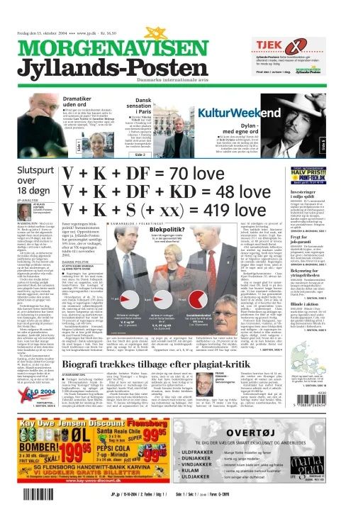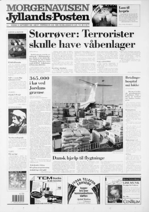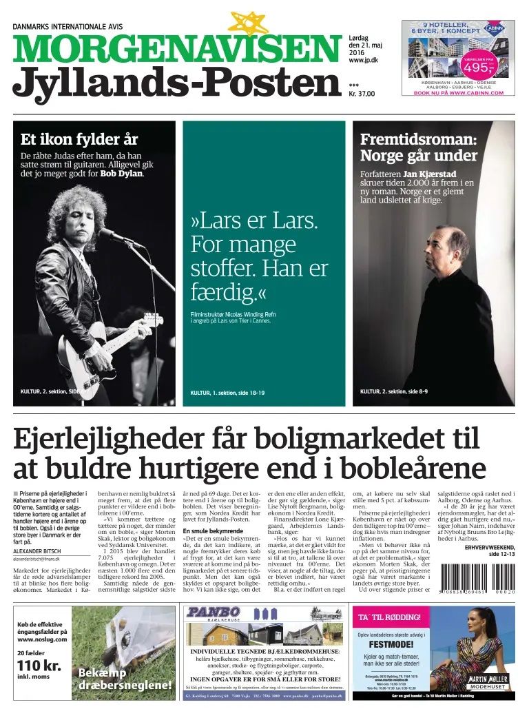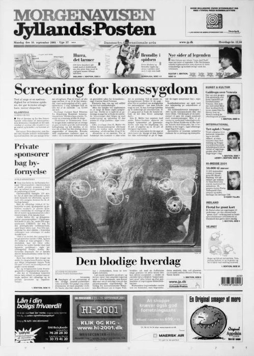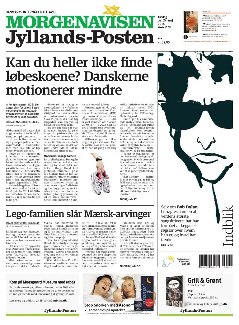 MORGENAVISEN JYLLANDS-POSTEN (The Morning Newspaper "The Jutland Post"), commonly shortened to Jyllands-Posten or JP, is a Danish daily broadsheet newspaper. It is based in Aarhus C, Jutland, and with a weekday circulation of approximately 120,000 copies.