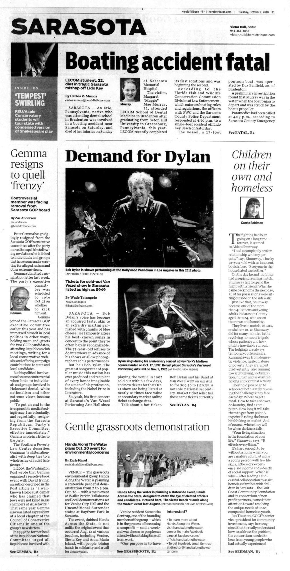 The SARASOTA HERALD-TRIBUNE is a daily newspaper, located in Sarasota, Florida, United States, founded in 1925 as the SARASOTA HERALD.