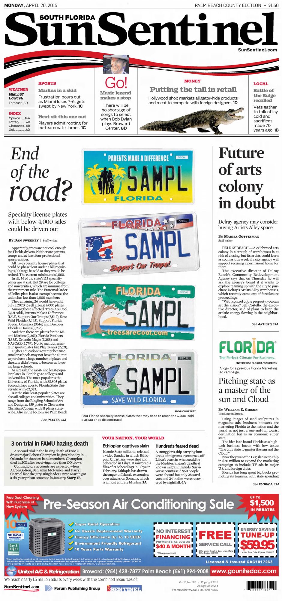 The SUN SENTINEL (also known as the SOUTH FLORIDA SUN SENTINEL), is the main daily newspaper of Fort Lauderdale, Florida, and Broward County, and covers Miami-Dade and Palm Beach counties and state-wide news, as well. It is the 4th largest-circulation newspaper in Florida. Paul Pham has held the position of general manager since November 2020, and Julie Anderson has held the position of editor-in-chief since February 2018.
