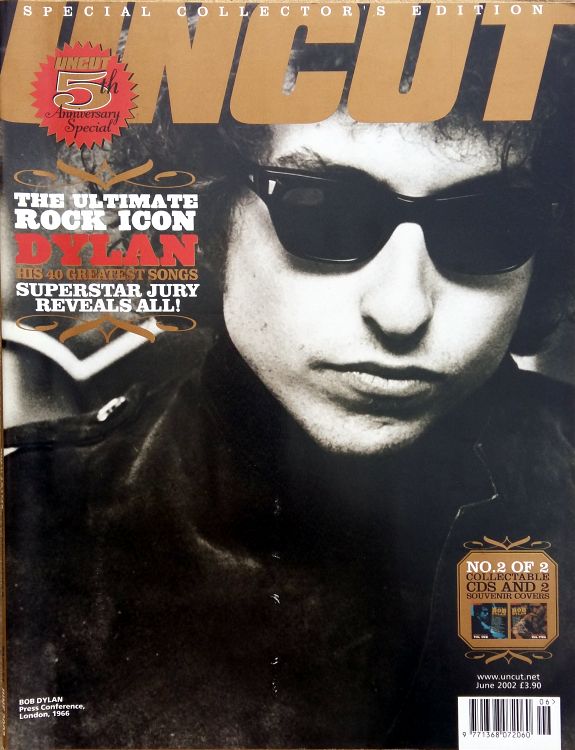 Below: August 2007, 13 pages. Came with a free CD "15 Brilliant Tracks From Dylan's Theme Time Radio Hour". The magazine, the CD and a booklet with many Dylan references ("The Uncut Book Of Revelations: A Compendium Of The Very Finest Rock Facts"), are inside a carboard enveloppe.