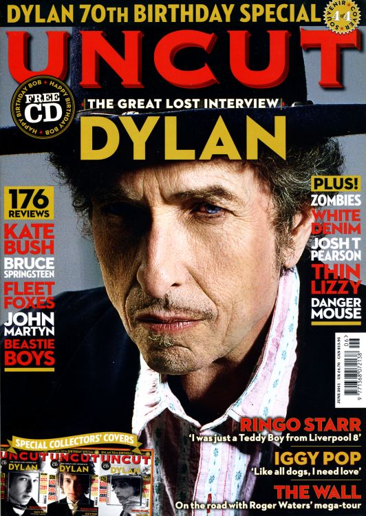 Below: June 2011, 18 pages. 'Dylan 70th Birthday Special', included the 16-track CD 'Happy Birthday Bob', containing 4 covers and 12 birthday songs. This special issue came with 4 different Bob Dylan cover stories for both magazine and CD (the content of the magazine and the 12 tracks of the CDs are identical): The .pdf is here.