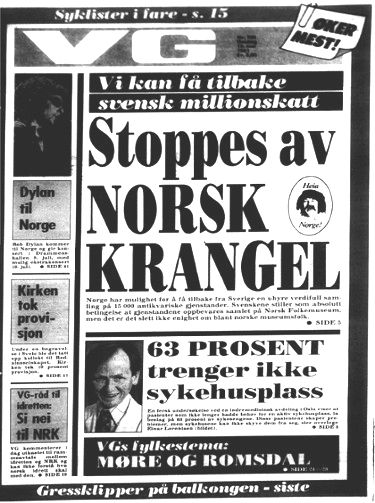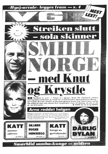 VERDENS GANG (lit. 'The course of the world'), generally known under the abbreviation VG, is a Norwegian tabloid newspaper. VG is the most-read online newspaper in Norway, with about 2 million daily readers.