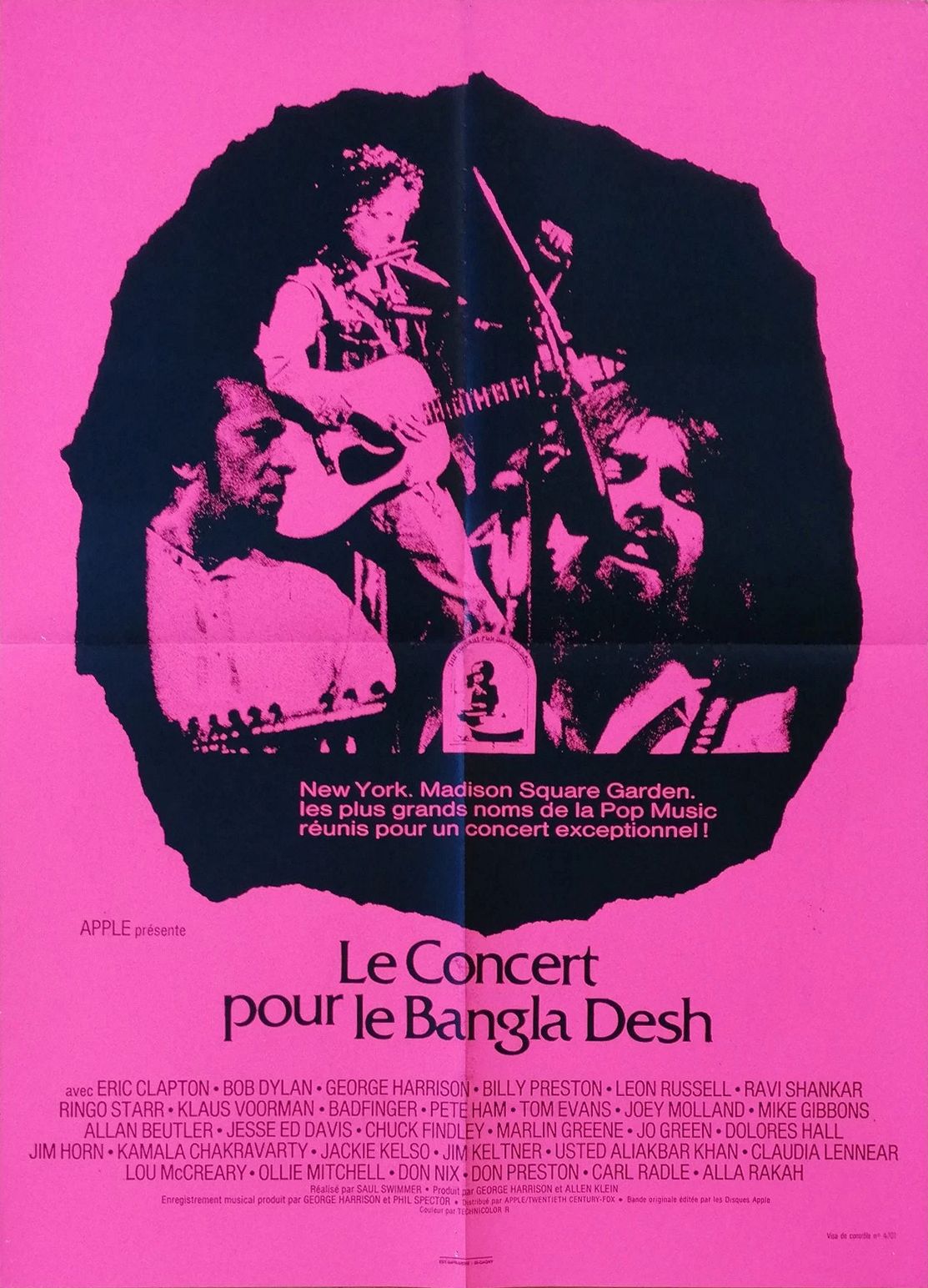 THE CONCERT FOR BANGLADESH is a film directed by Saul Swimmer and released in 1972. The film documents the two benefit concerts that were organised by George Harrison and Ravi Shankar to raise funds for refugees of the Bangladesh Liberation War, and were held on Sunday, 1 August 1971 at Madison Square Garden in New York City. As well as notable performances from Harrison and Shankar, the film includes "main performer" contributions from Harrison's fellow ex-Beatle Ringo Starr, Billy
