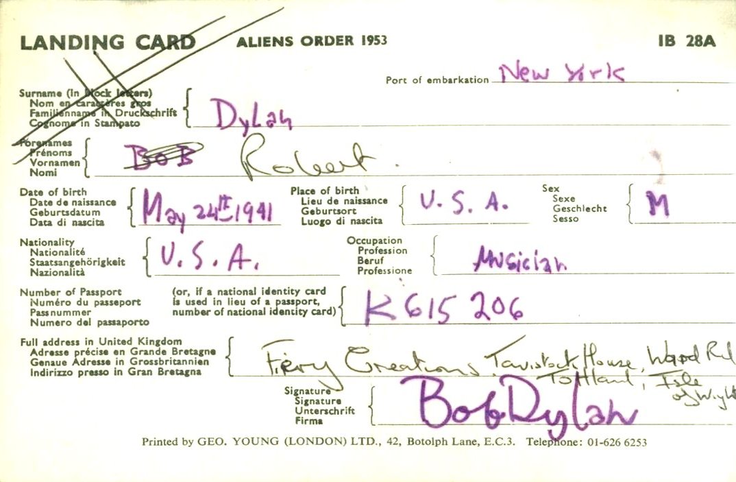 Note also that Bob was a 'Tunesmith' in 1965 and a 'Musician' in 1969, and that his passport has been renewed.