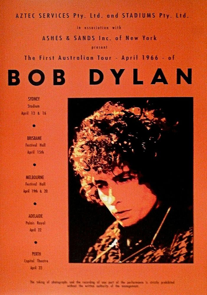 This tour has unsurpassed historical importance as it was Bob Dylan’s first appearance in Australia. All the concerts during this tour contained electric sets, similar to what Dylan shocked fans with at Newport the year prior. The musicians Dylan employed as his backing band during the 1966 tour were known as "Levon and The Hawks". They subsequently became famous as The Band soonafter.